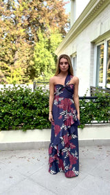 Descripción y composición: conjunto estampado por nosotros de crepe de seda y poliéster. Forrado con tela estampada.