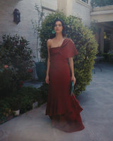 Descripción y modo de uso: vestido de crepe georget forrado en gasa.