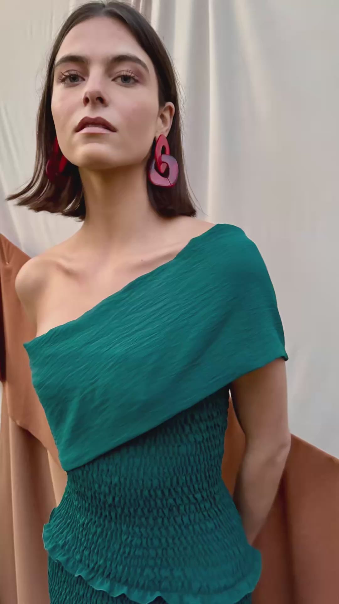 Pieza removible que permiten una prenda versátil, teniendo 4 formas distintas de ponerse: strapless, bufanda al cuello, bufanda en ambos brazos o bufanda en un brazo (con un enganche por adentro).