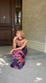 Descripción y composición: Vestido de seda y poliéster con forro de símil de crepe.