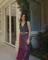 Descripción y modo de uso: conjunto de gasa forrado con aplicaciones de flores de terciopelo.