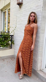Busto: hasta 95 cm; Cintura: 77 cm; Cadera: 99 cm. Largo: 125 cm.